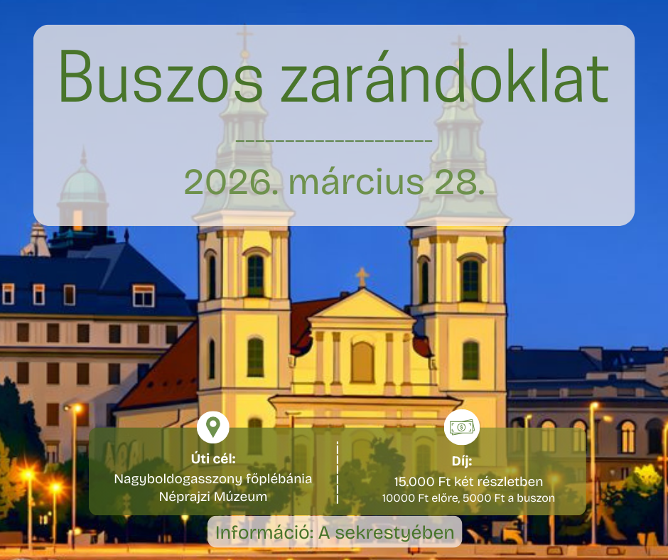💶 Díja: 15.000 forint, mely a buszköltséget, illetve a templomi és múzeumi belépők, illetve tárlatvezetés díját tartalmazzák. Jelentkezéskor 10.000, a buszon 5.000 forint fiezetendő.