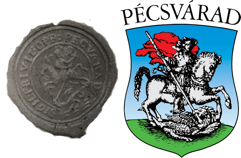 - Pécsvárad címerében viseli Szent Györgyöt. Ez egy nagyon régi örökség, melynek első nyomai a 18. századra vezethetők vissza: az első, 1734-es pecsétnyomón már a jól ismert, sárkányt legyőző harcos szerepel.